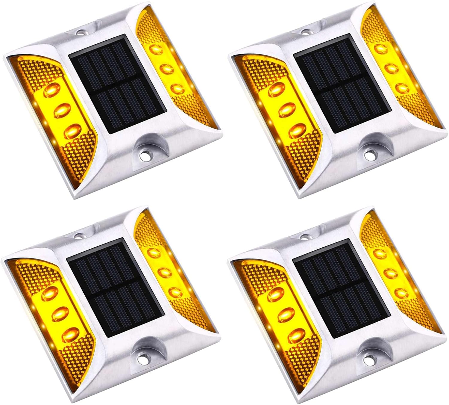 Aolyty Solar Driveway Dock Lights, IP68 Waterproof Solar Deck Lights Outdoor Warning Step Lights Reflective Road Marker for Sidewalk Stair Garden Pathway Walkway (4 Pack, Yellow)