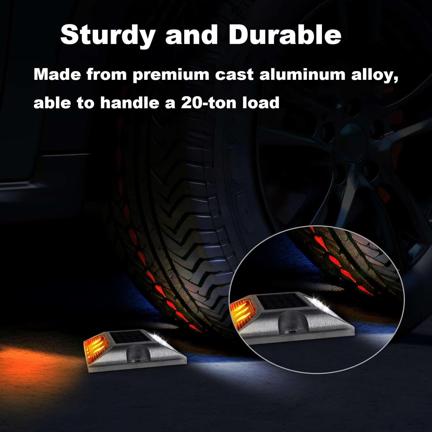 [Outstanding Compressive Strength] Made of premium cast aluminum alloy, these solar dock lights feature outstanding compressive strength, capable of bearing loads up to 20 tons (44,000lbs)